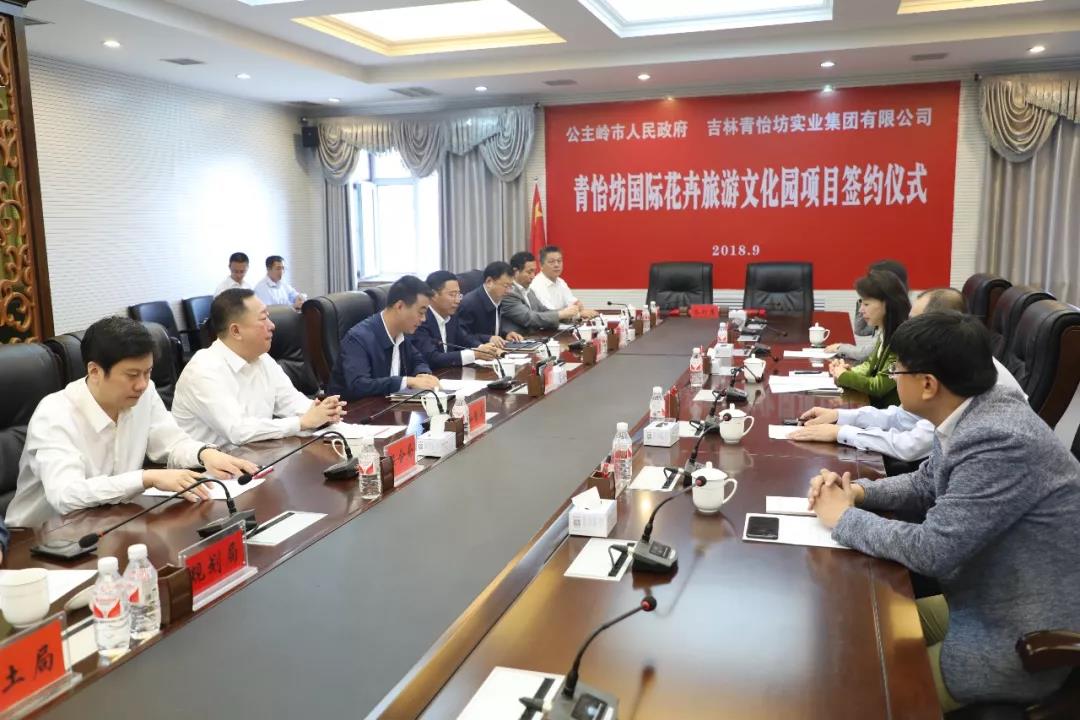 9月13日上午,青怡坊国际花卉旅游文化园项目签约仪式在公主岭市政府举行。市委副书记、市长张明,副市长高立君,吉林青怡坊实业集团有限公司董事长张丹出席。